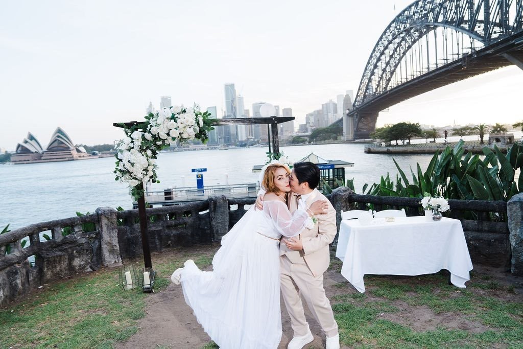 So we had a very relaxed fun wedding ceremony near Sydney Harbour with the Opera House in the background and as well as Sydney Bridge.